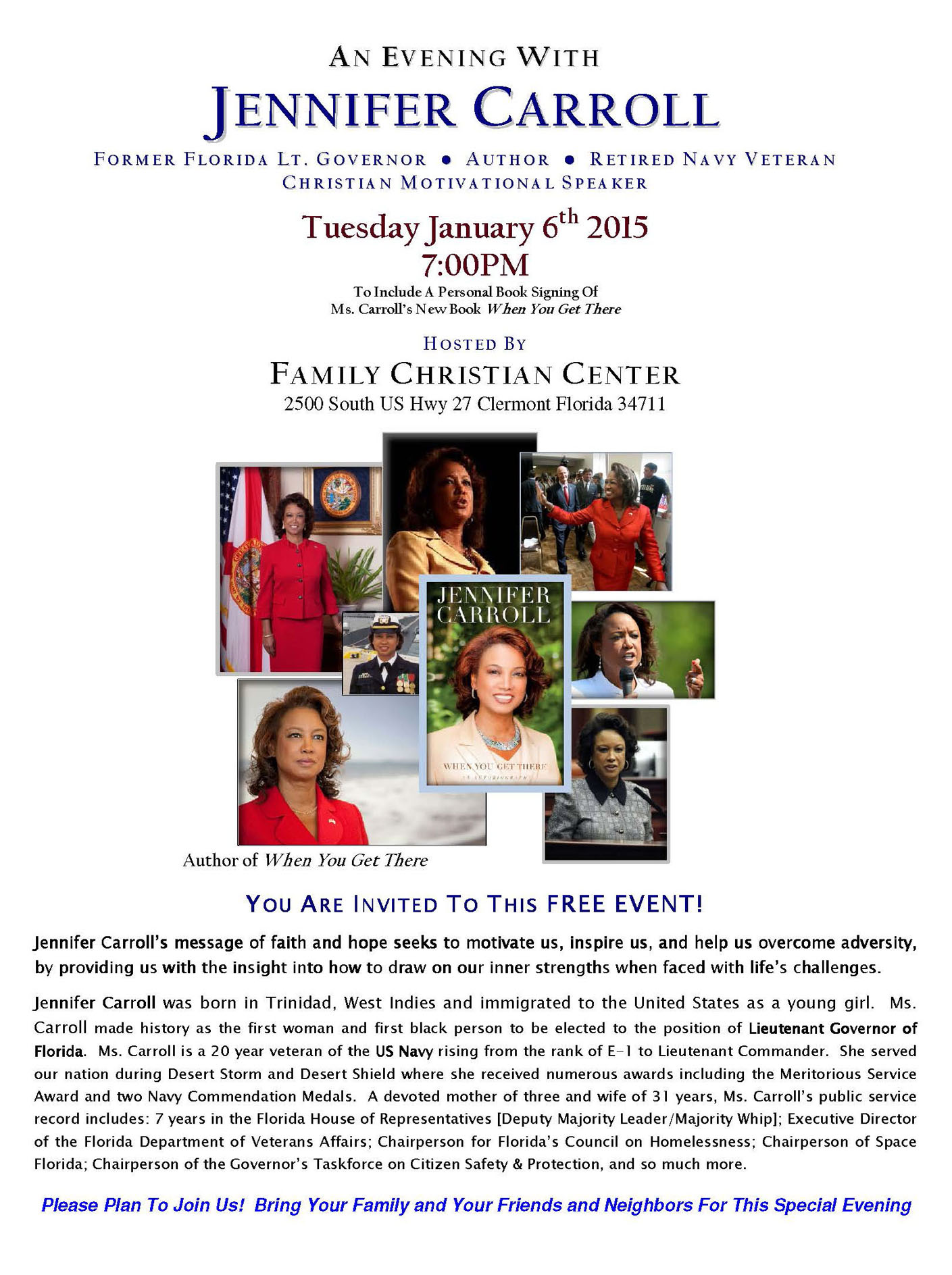 If you would like to have Former Lieutenant Governor Jennifer S. Carroll as a guest speaker for your company/organization's live or virtual event, lecture, seminar or webinar, please complete the form below and submit. A representative will contact you soon.