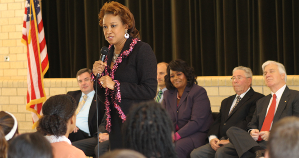 Jennifer pays a surprise visit to an elementary school to present an award won by a student who chose her as an essay subject. The student was overwhelmed that the Lieutenant Governor would personally visit her. Jennifer took time to open the floor for questions from all students and shared some of her life experiences with them.
